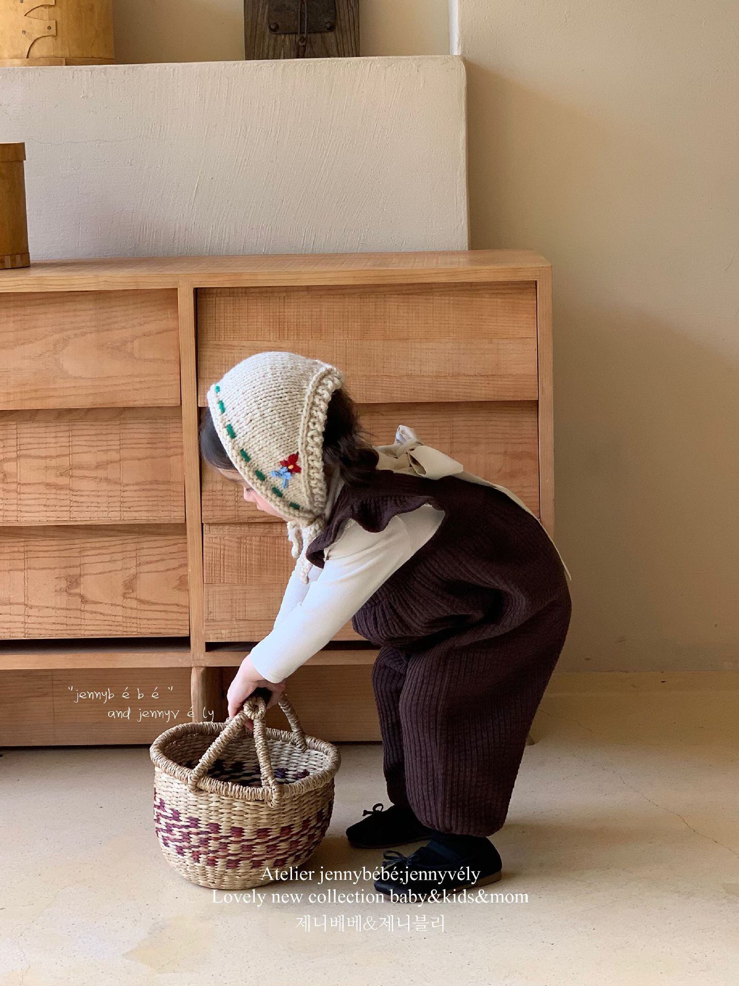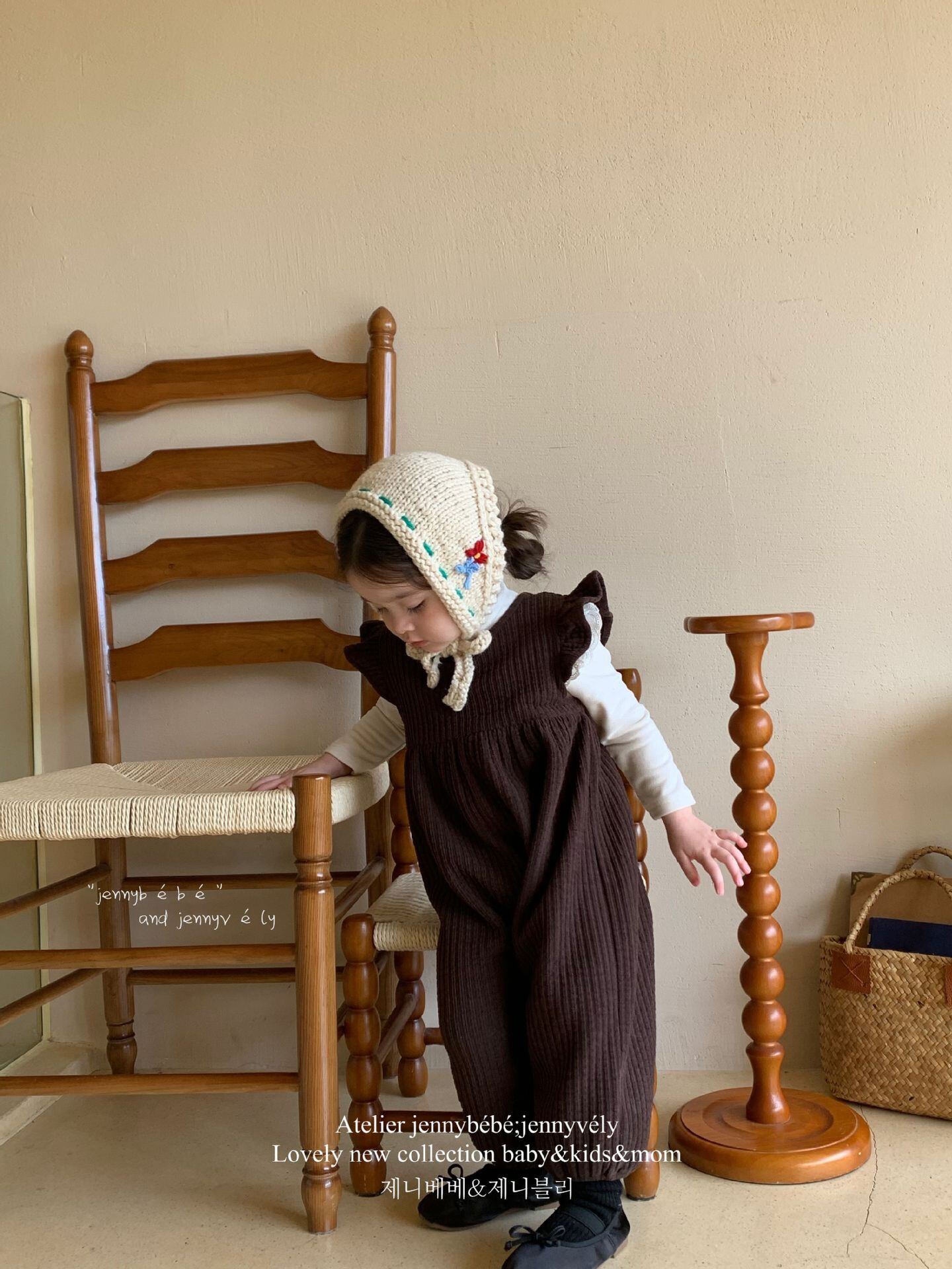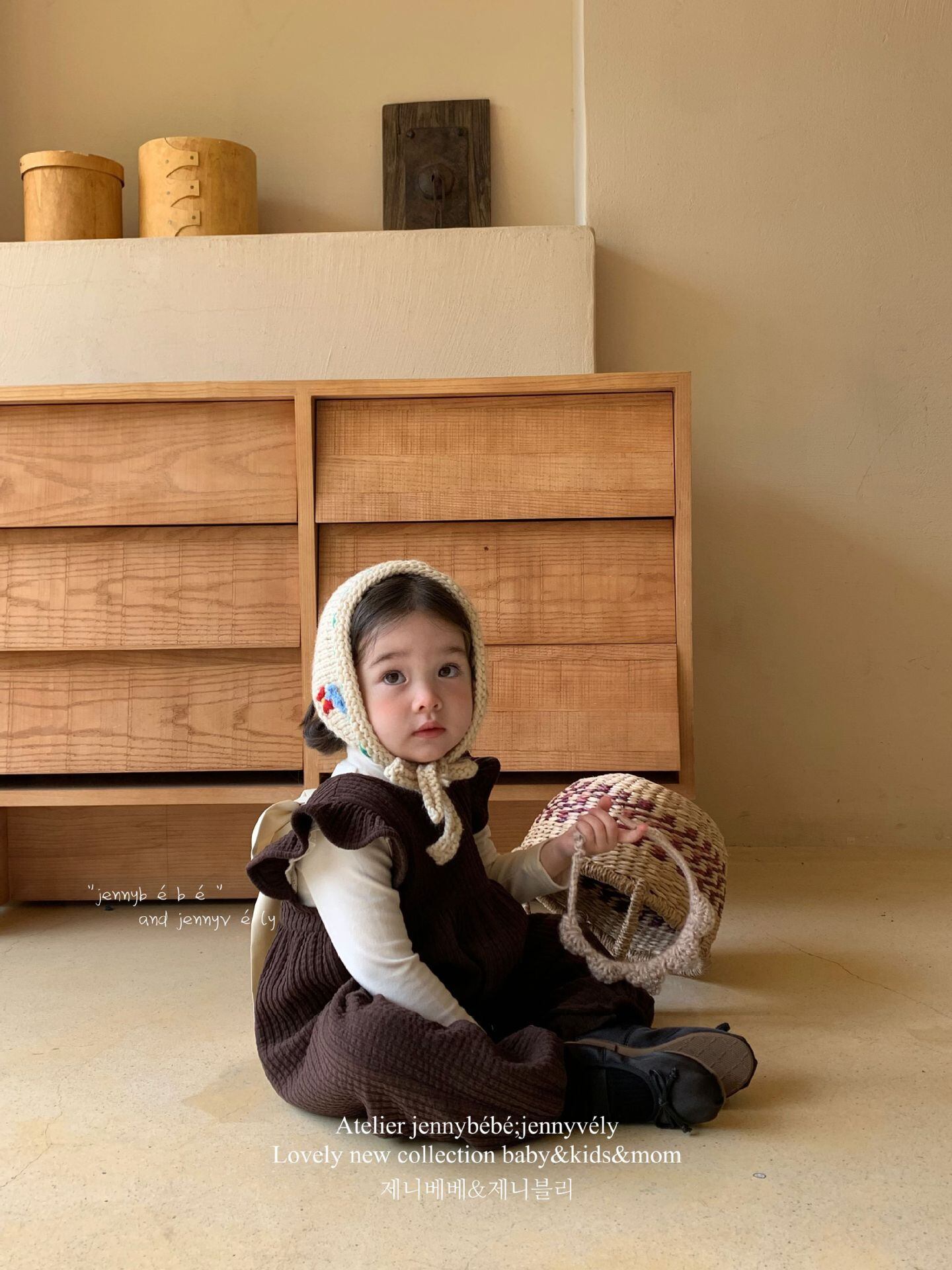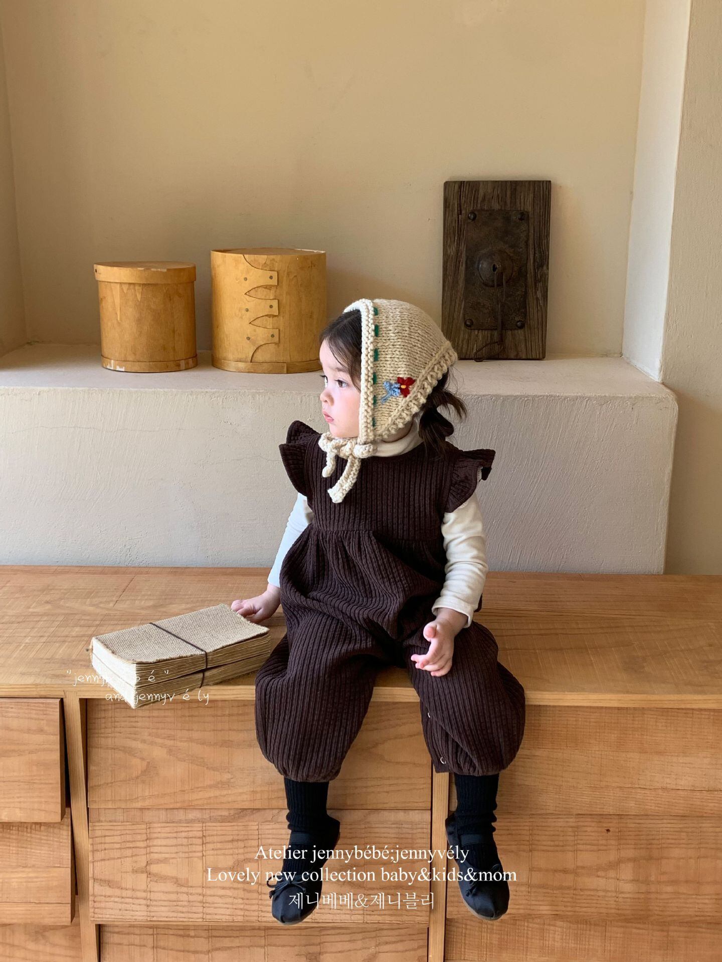 背中の大きなリボンがポイントのオーバーオール。 コーデュロイ生地なので、秋〜冬にかけて大活躍のアイテムです。 前から見ても、後ろから見ても360度可愛らしい1枚です。