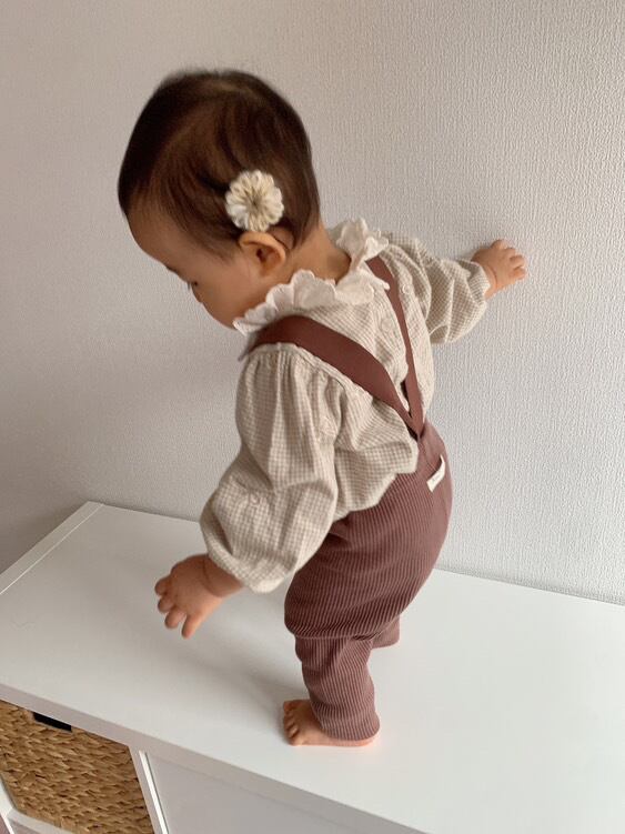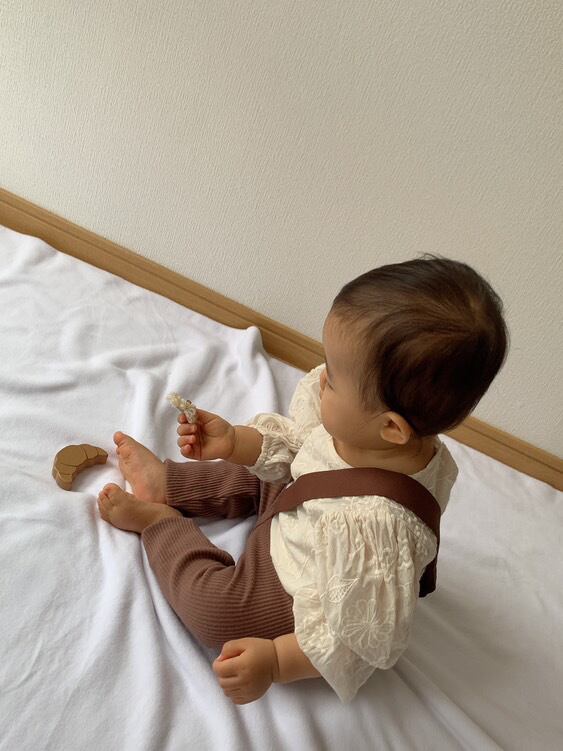 動き出したベビーに欠かせないこちらのアイテム。 リブニット素材で伸縮性もあり、 着せやすい&ベビーも動きやすいはずです◎
